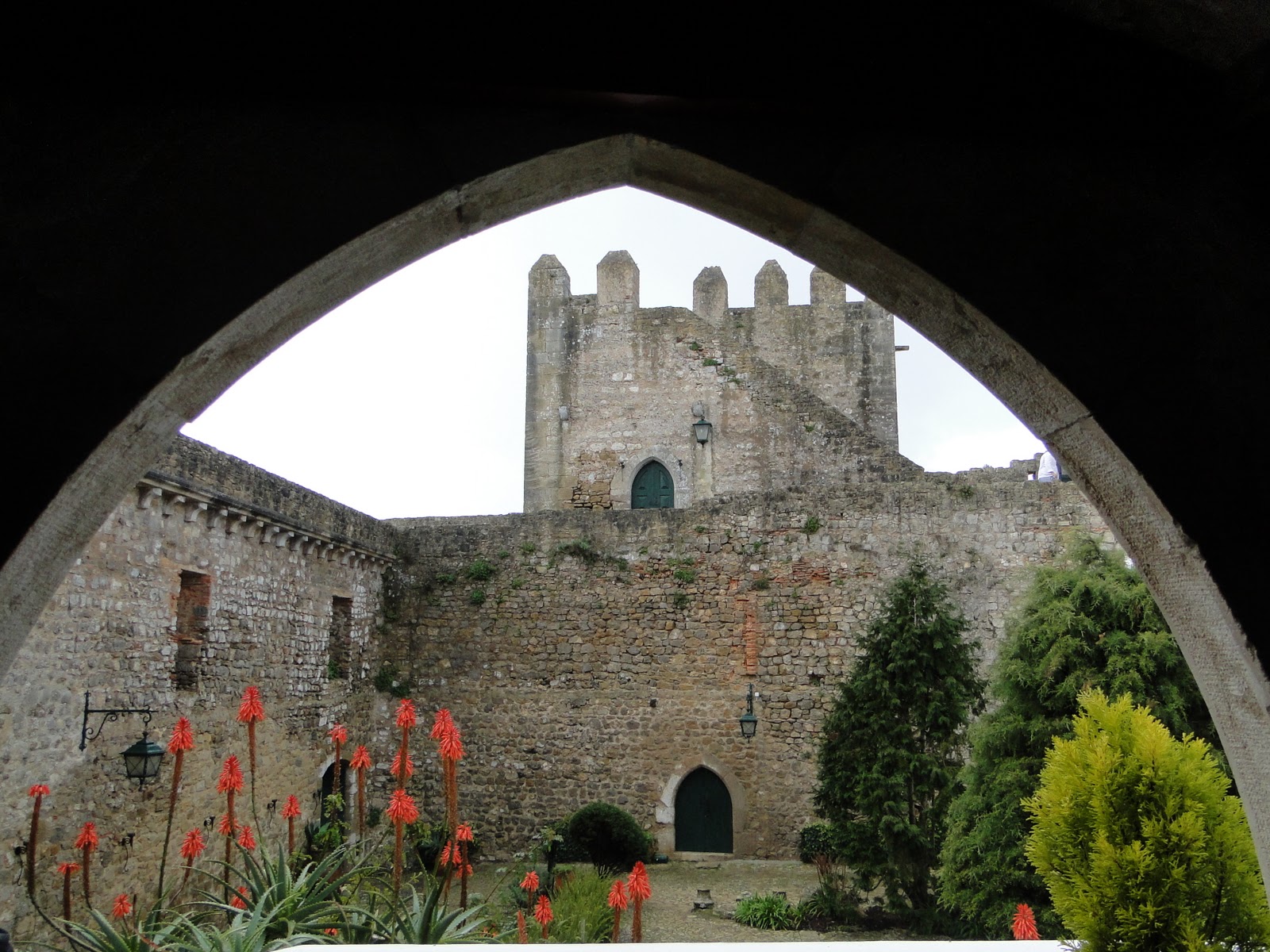 We are becoming spoiled with all the special meals we've had at the posadas. Climbing these steps we entered the Posada de Obidos another gourmet lunch. Not surprising, my appetite appeared as the tantalizing aromas filled the dining room.. .We all loved this small posada situated totally within the old castle which was a wedding present from a 15th century king to his bride. No wall can be moved within these historic structures so the posada retained the feel of the original castle. The photos depict the entrance, the tower suite and the dining room.. The entire experience from dining to a tour of the unique bedrooms and views of the town from windows in the thick stone walls was something straight out of King Arthur.